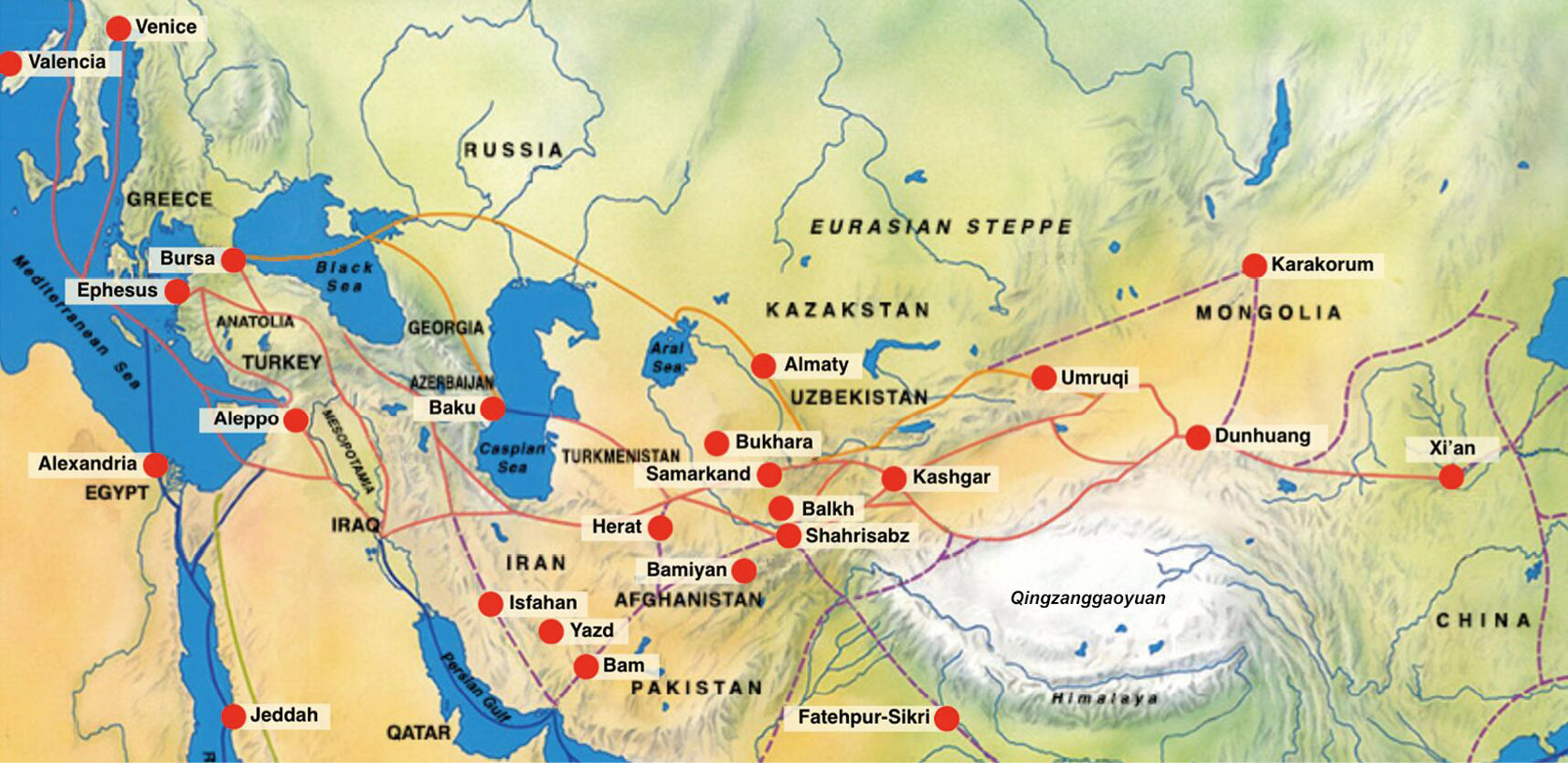 UNESCO Silk Roads Programme. Interactive map of the cities along the Silk Roads. https://en.unesco.org/silkroad/silkroad-interactive-map (accessed on August 2025).